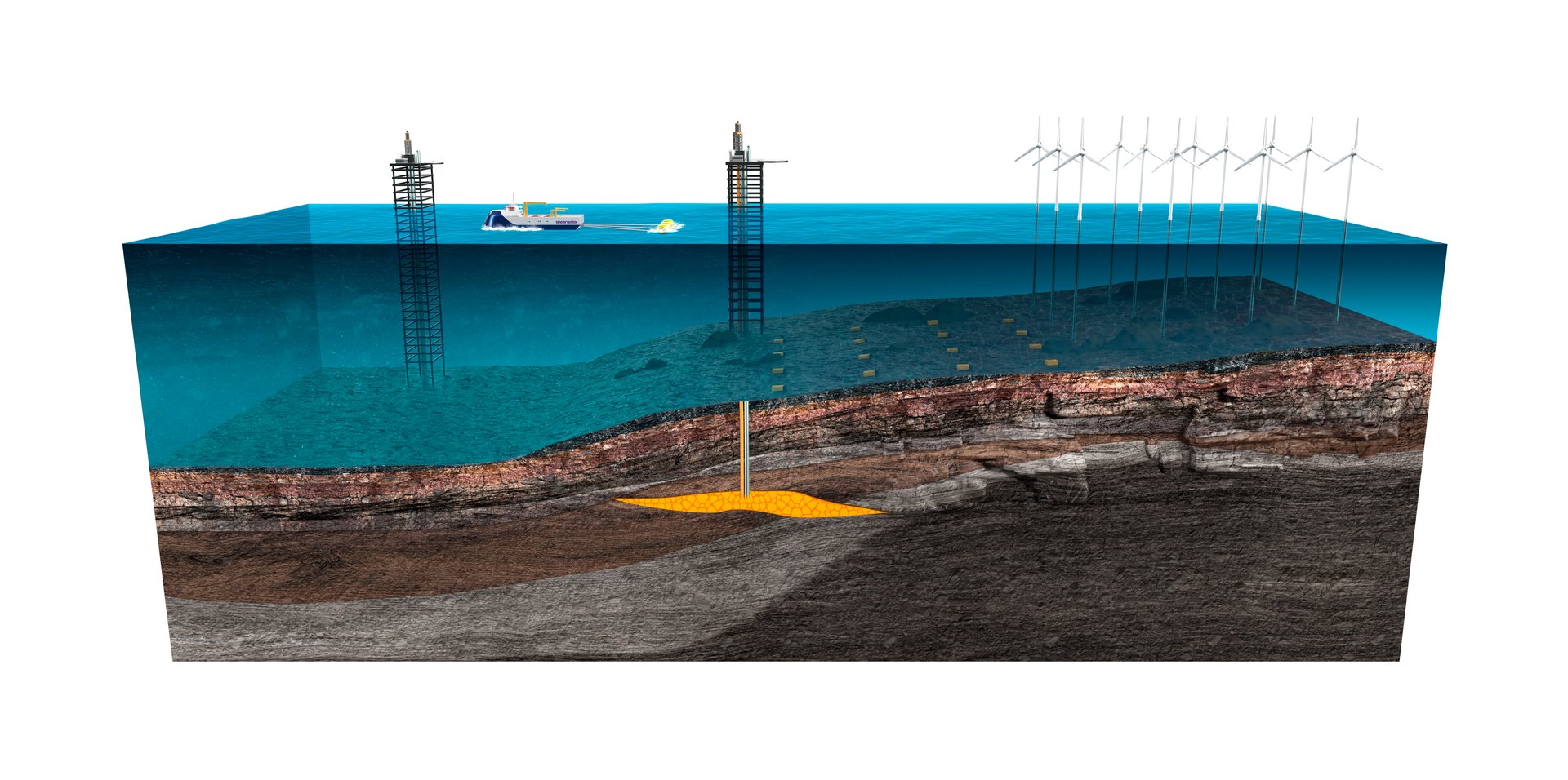 Image: Seismic acquisition across energy transition techniques; offshore wind and carbon capture and storage.